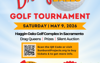 Beatriz Barillas2026-03-09T19:41:06+00:002026 Drag Your Balls Golf Tournament Get your tickets now before they are sold out! Click Here! join us for Sunburst Projects' Drag Your Balls Golf Tournament on Saturday, May 9, 2026 at Haggin Oaks Golf Complex in Sacramento! We have lots of surprises planned for both seasoned golfers and newbies alike! Drag Queens will be speeding around the golf course entertaining you and offering to wash your balls as you play 9 holes! Tickets include: • 9:00am shotgun start, golf cart and green fees. • Hilarious Drag Brunch Party with buffet brunch, no-host bar, drag show, prizes, and [...]